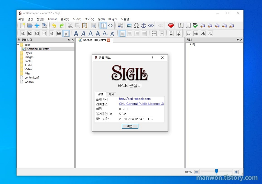 2. 무료 전자책 프로그램 시길(Sigil)의 설치와 간단한 환경 설정