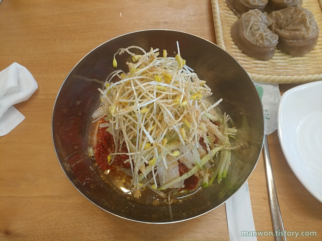 집으로 가는 길에 양주에 있는 다인 막국수라는 식당에서 점심을 먹었다. 비빔막국수와 만두를 시켰는데 매우 맛이 좋았다.