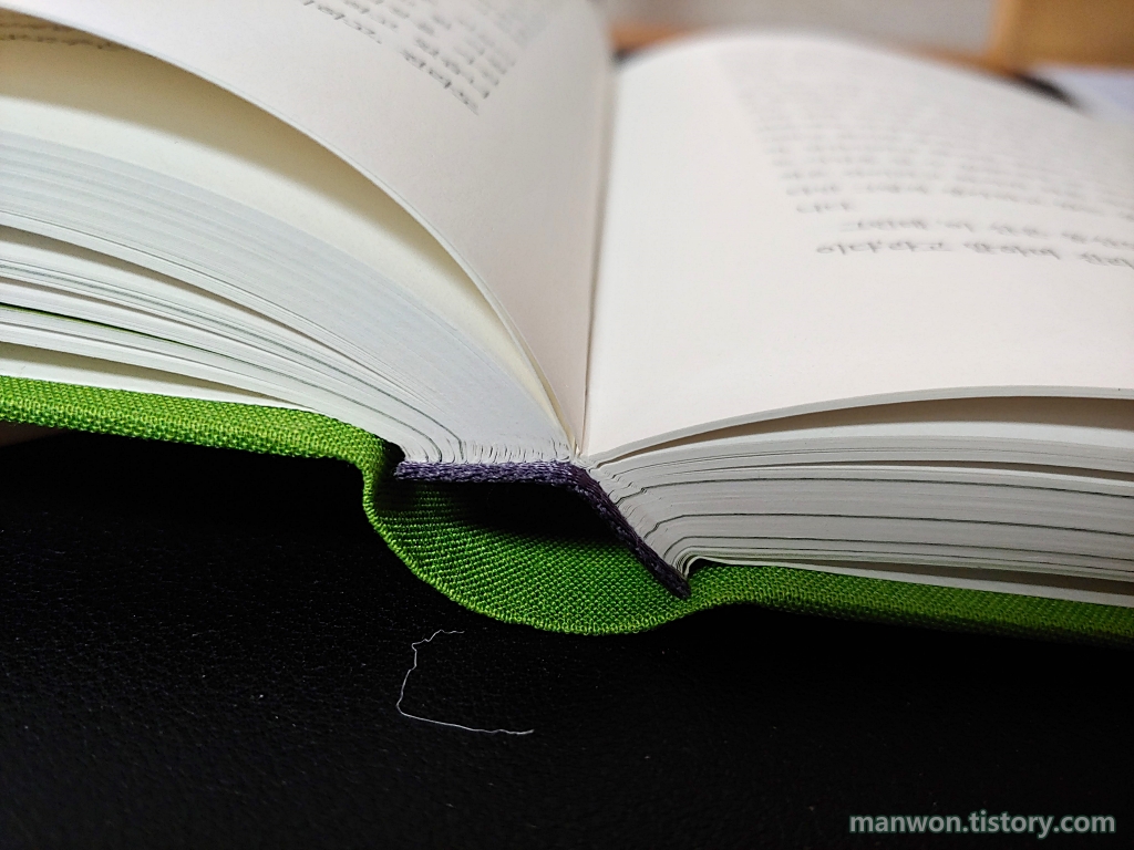책의 제본이 위 사진처럼 돼 있는데, 책이 양옆으로 쫙쫙 잘 펼쳐진다. 처음에는 새책 같이 않게 책이 잘 펼쳐져서 이거 중고책 아니야? 할 정도였다. 아마도 책 제본 자체가 처음부터 잘 펼쳐지도록 어떠한 기술이 들어간 게 아닐까 싶다.