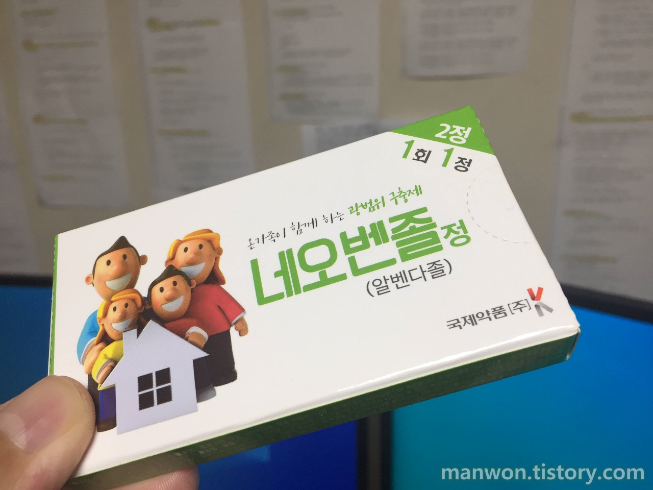 1년에 한 번 구충제를 복용한다. 그래서 이번에도 약국에서 네오벤졸이라는 알벤다졸 구충제를 구매했다.