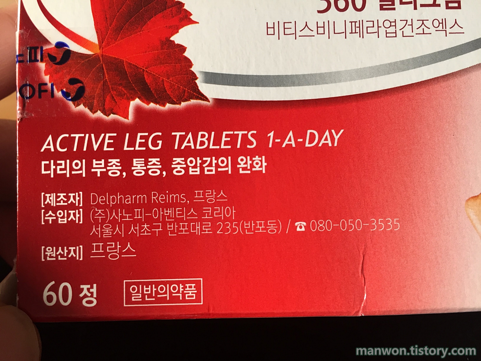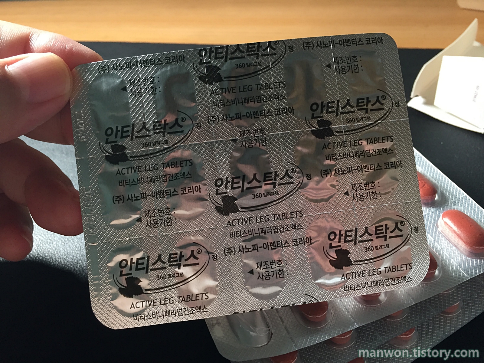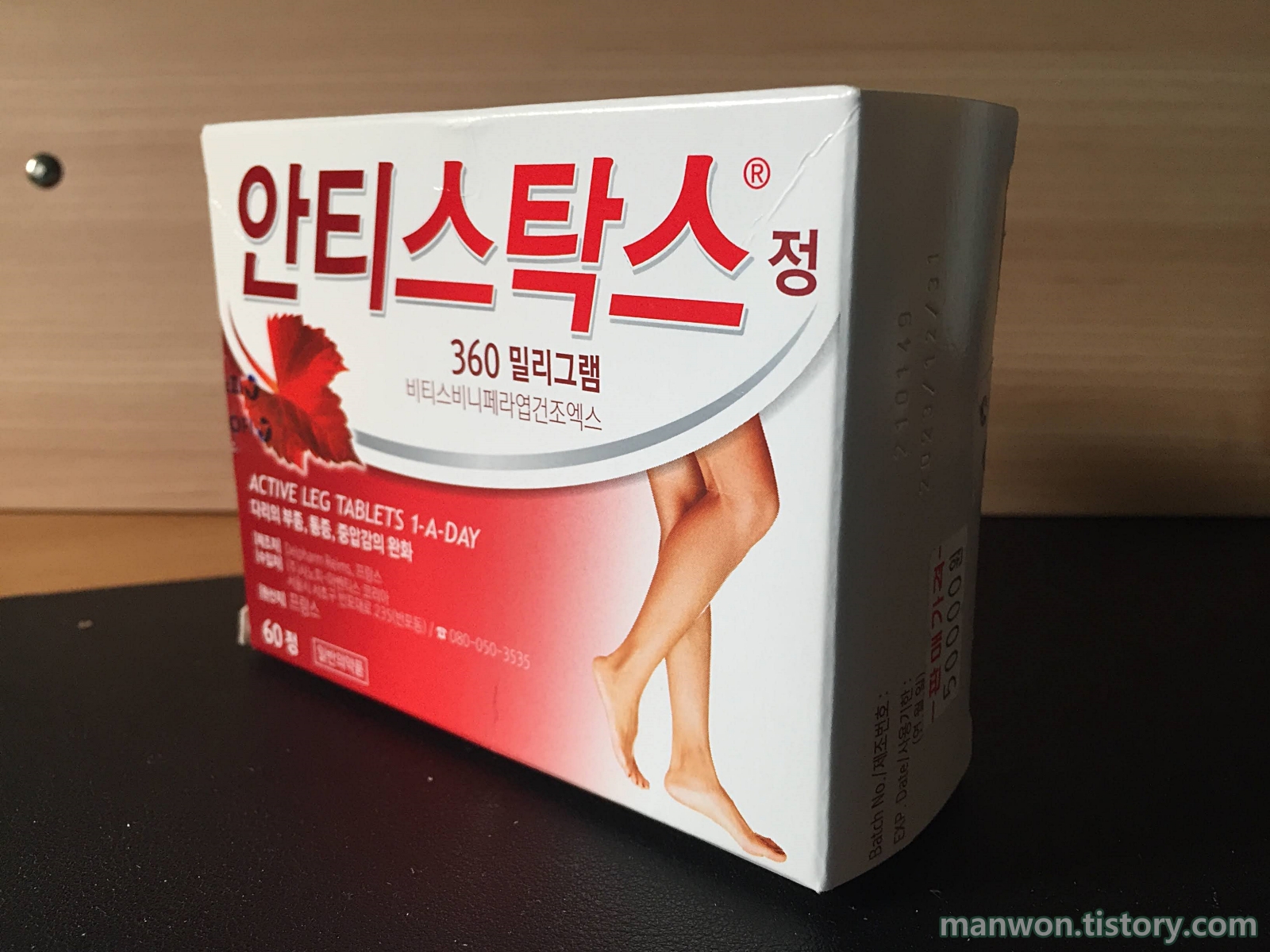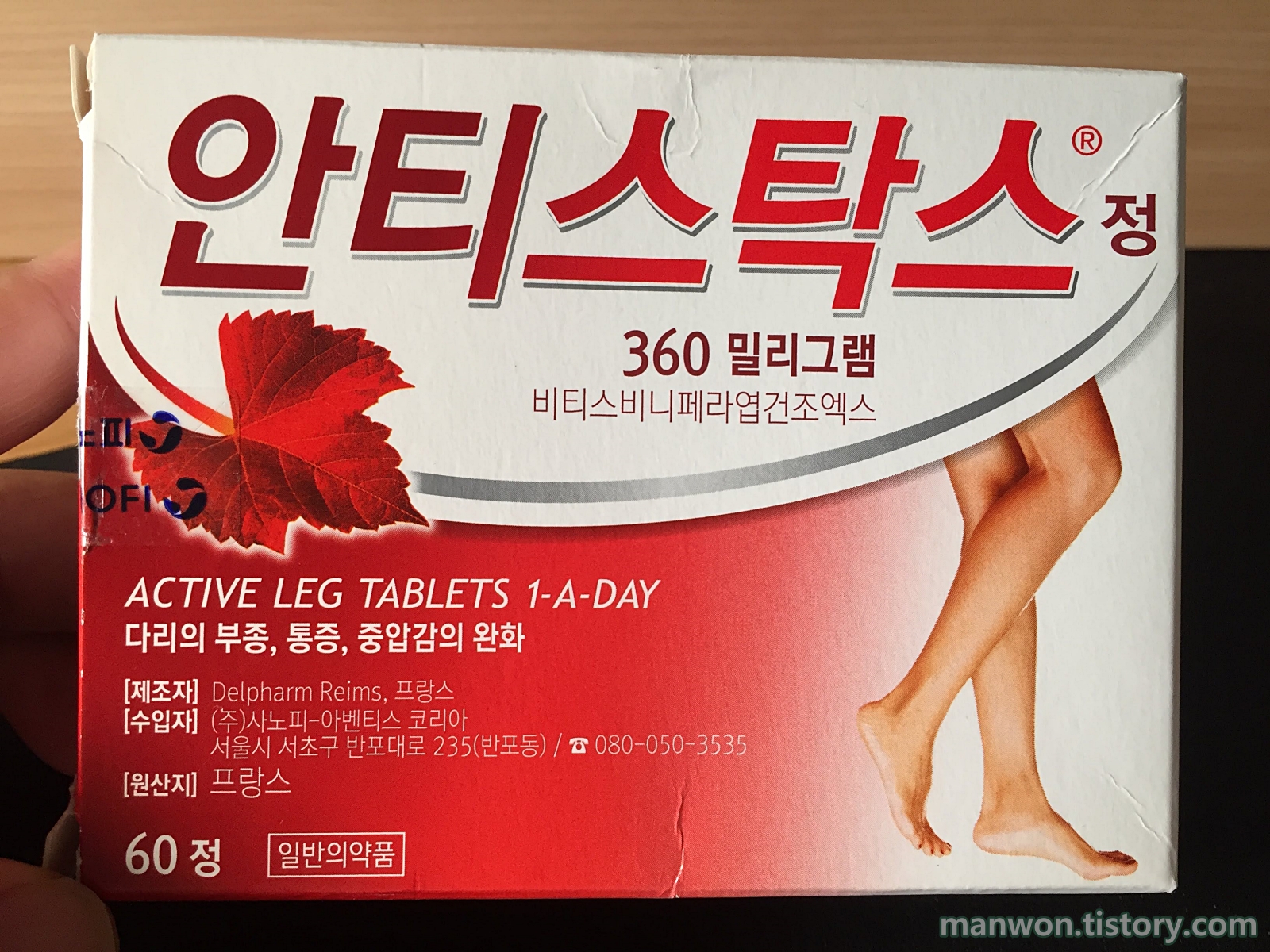 다리의 부종, 통증, 중압감의 완화 - 안티스탁스 360 밀리그램 간단 구매 후기