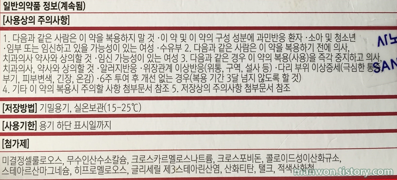 사용상 주의사항을 좀 크게 확대해서 올려봤다.