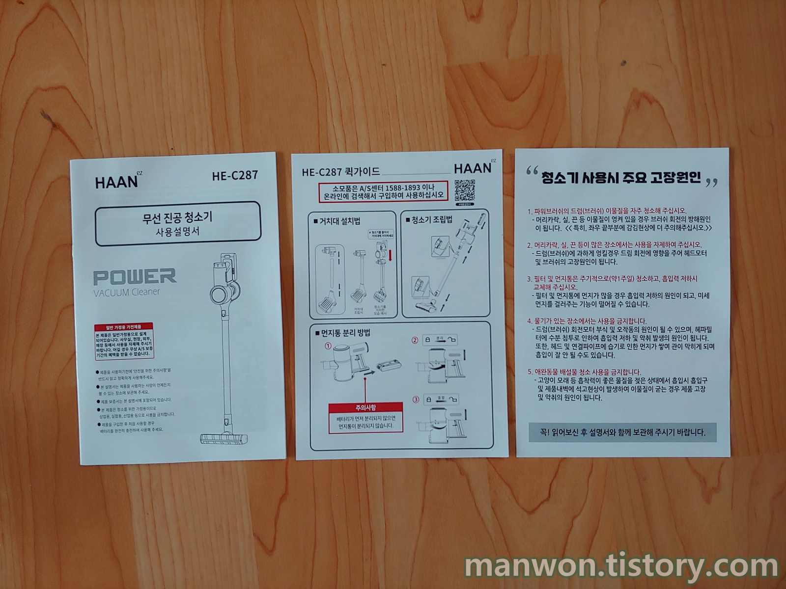 한경희 무선 진공 청소기 HE-C287의 사용설명서다.