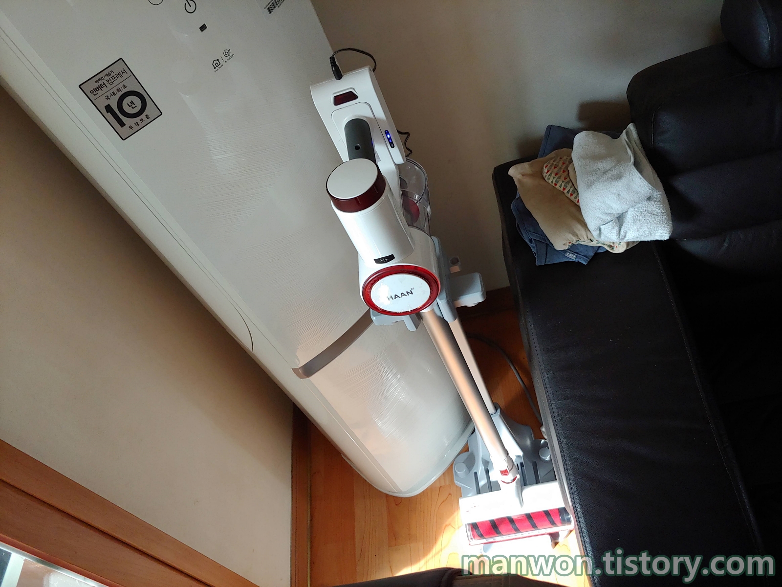 거실 한편에 어댑터를 연결한 후 첫 충전을 시작했다. 이제는 전선 걸리적거리는 일 없이 쉽고 편하게 청소를 할 수 있겠단 생각에 기분이 좋아졌다. 하지만 첫날 사용부터 약간의 문제점이 노출되기 시작했는데....