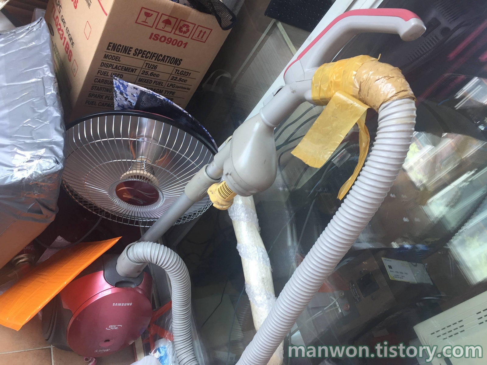 위 사진에 보이는 게 그전까지 내가 사용했던 삼성 진공청소기다. 전원선을 쭉쭉 뽑아 쓰는 방식이라 방마다 코드를 빼고 새로 끼는 게 너무 불편했다. 하지만 흡입력 자체는 정말 만족스러웠다. 그리고 먼지통 비우는 것도 굉장히 편했는데....
