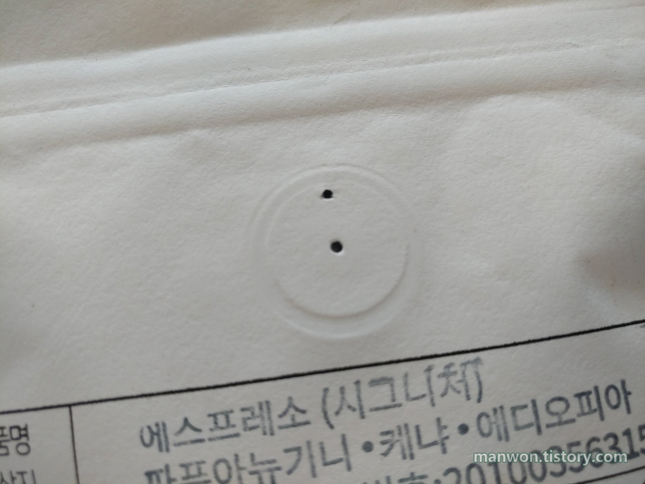 후면을 보면 커피 원두 배합이 파푸아뉴기니, 케냐, 에티오피아라고 나와있네요.