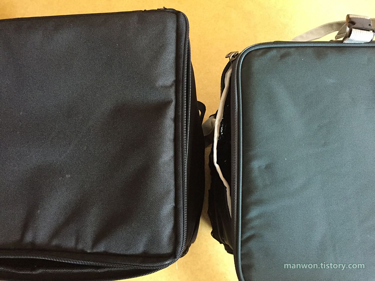 구형 가방은 바깥천과 안쪽 보온재 사이에 완충 소재가 상하좌우 위아래 꽉 차있다. 정말 탄탄하게 잘 만든 가방이다.