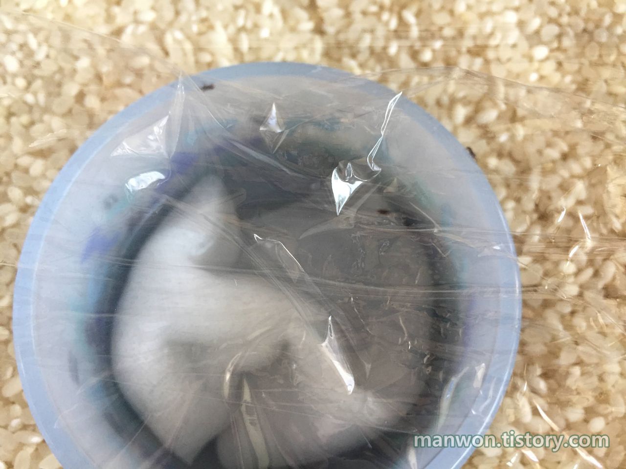 그래서 다시 뚜껑을 열고 크린랩으로 다시 한 번 밀봉을 했다.