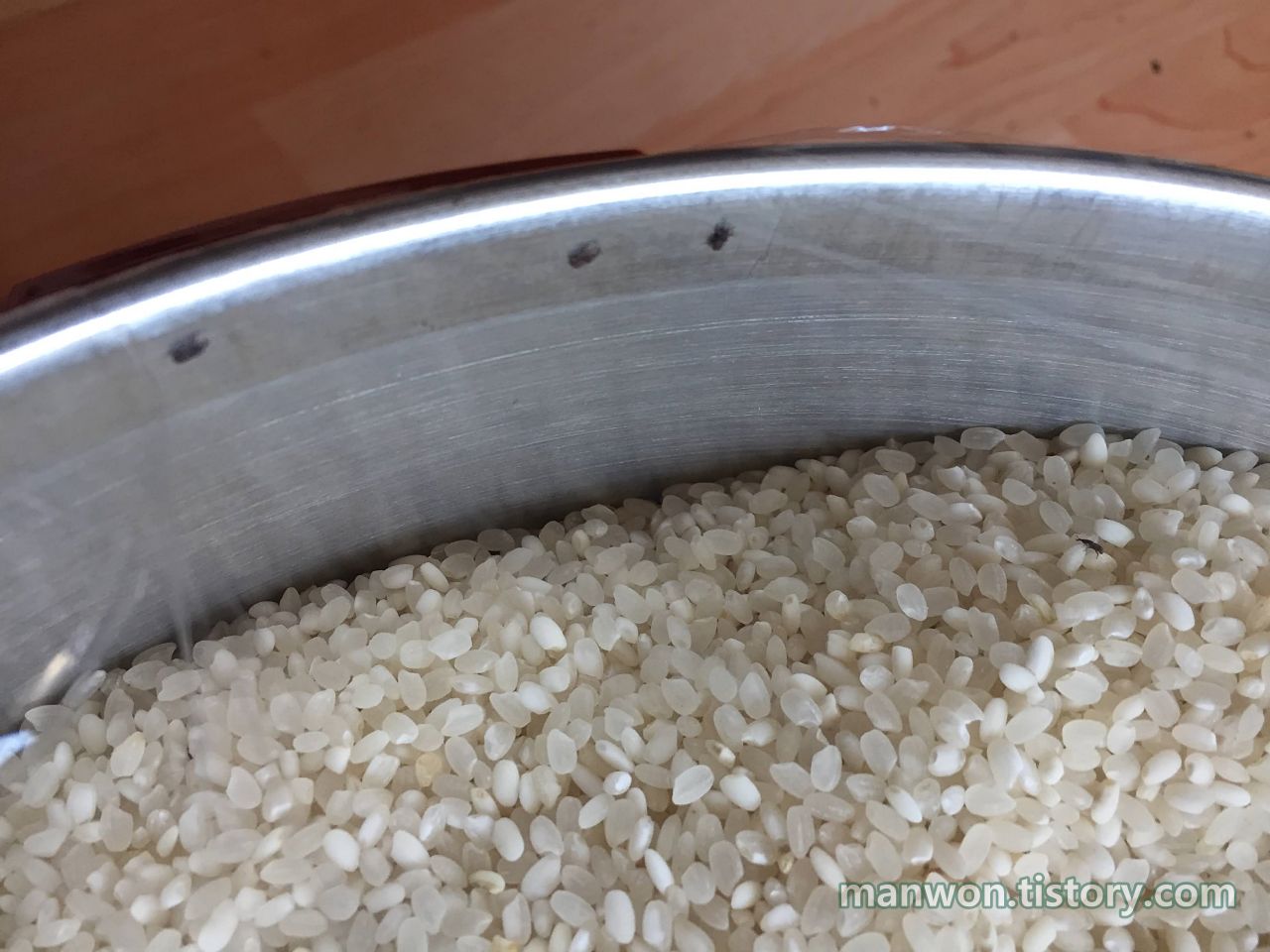 쌀벌레가 생긴 쌀가마니에서 쌀을 스테인리스 통으로 일부 옮겨줬다.