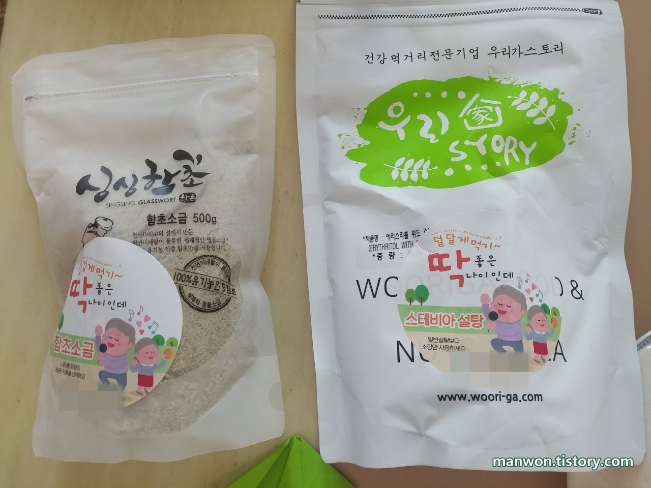 오늘은 함초소금과 스테비아 설탕을 들고 오셨다.