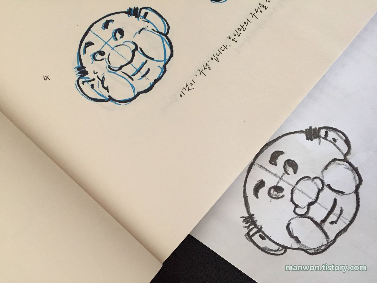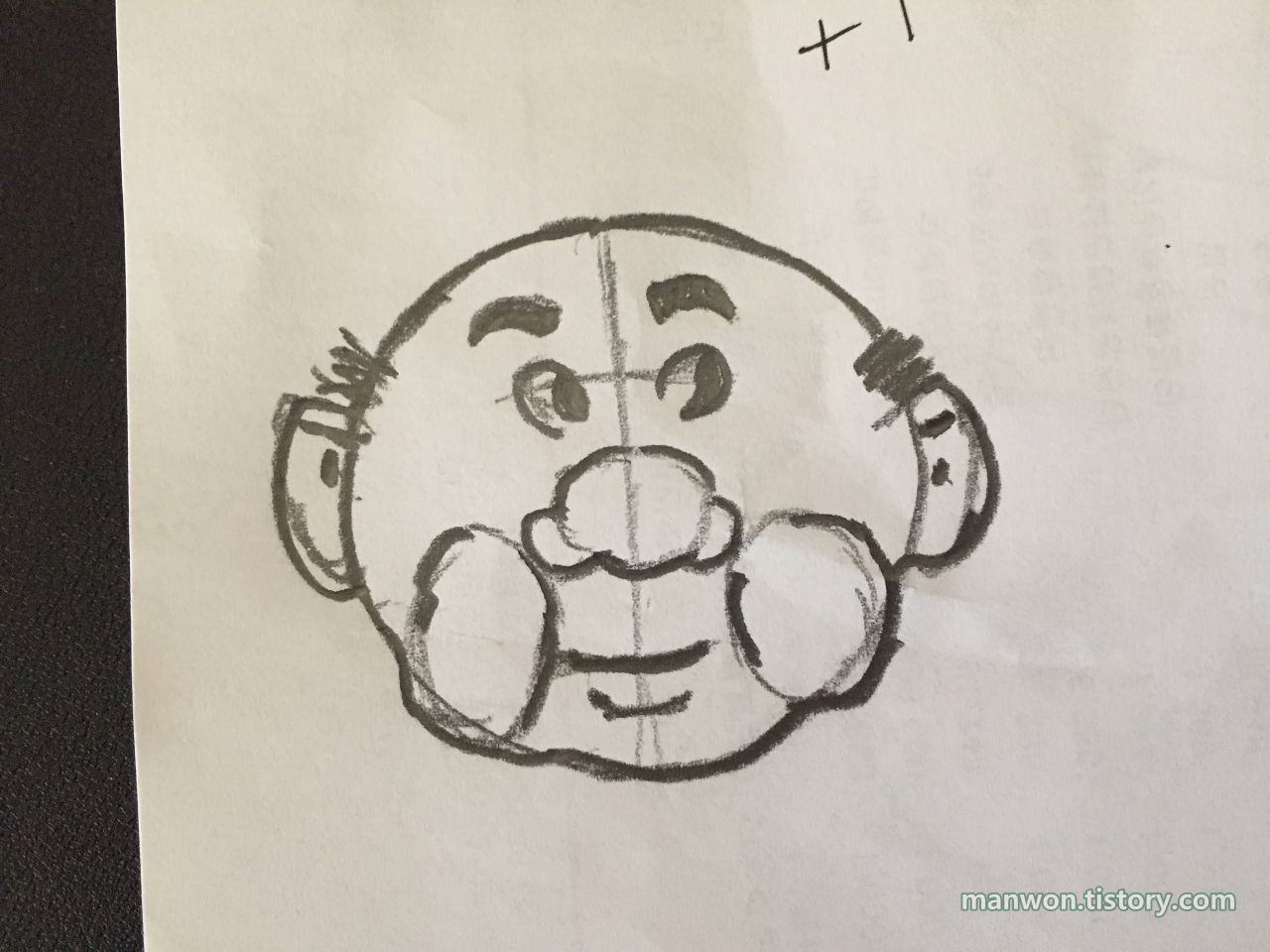 자세히 보면 얼굴 전체에 해당하는 큰 원을 그린 후 적당히 공간을 나눈 공간에 다시 원이나 선을 그리는 식이다.