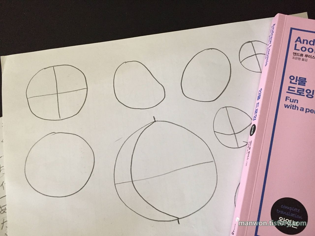 원을 아주 동그랗게 그리는 게 중요한 게 아니라 조금 찌그러진 원이더라도 그 원의 특성을 살려서 드로잉 하는 게 중요하다고 한다.