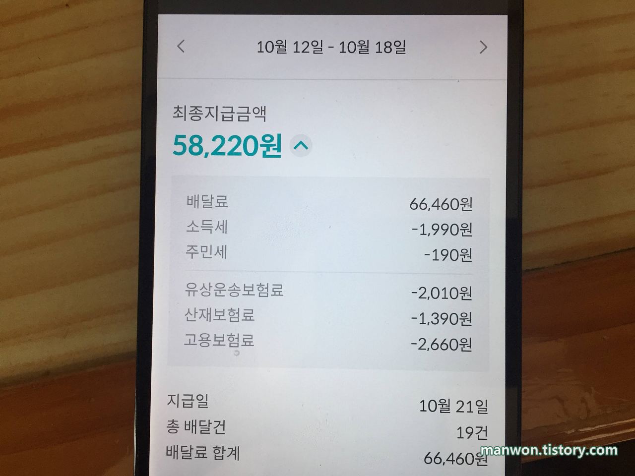 배달료 실수령액: 58,220원