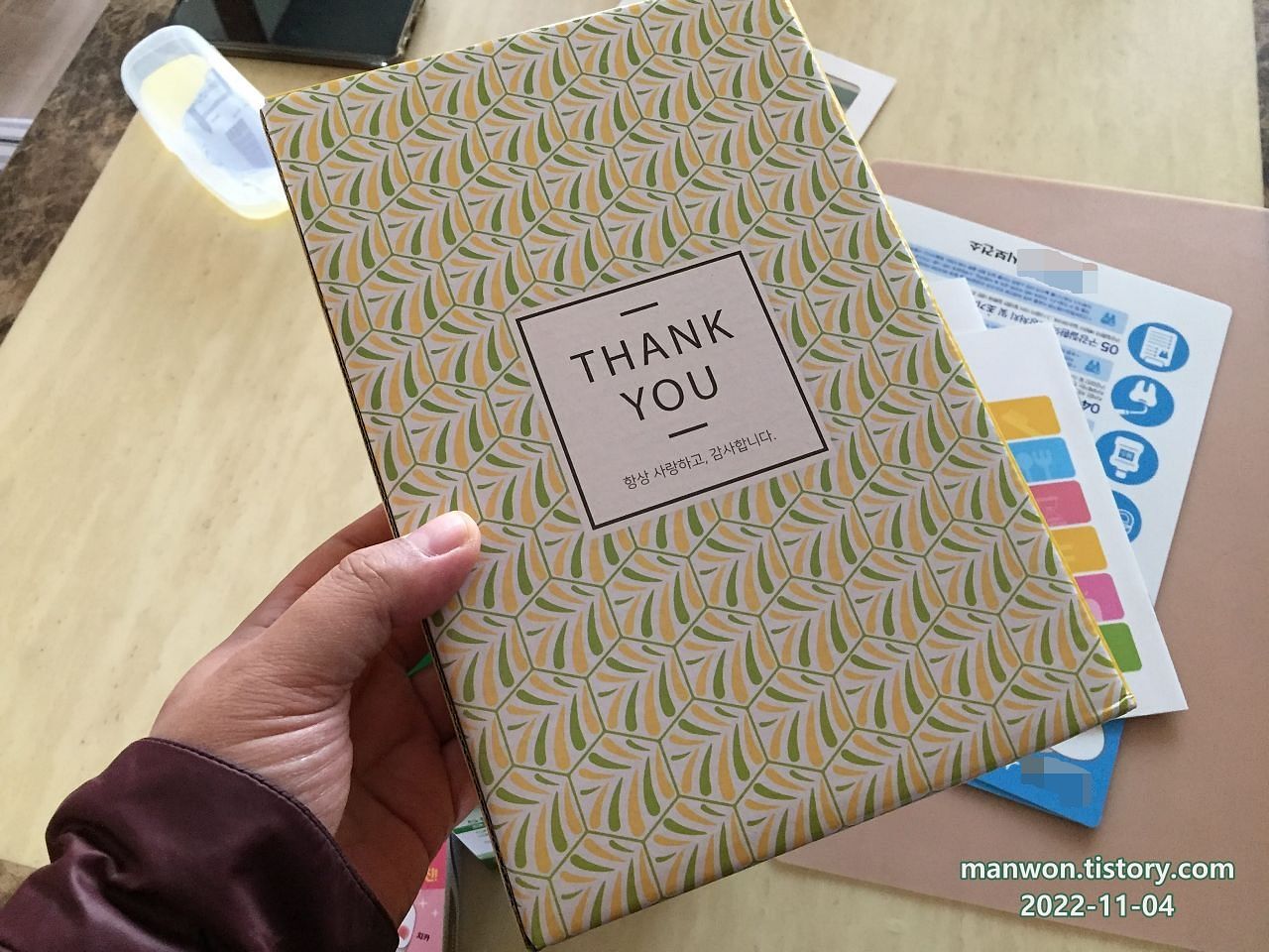 오늘도 몇 가지 증정품을 갖고 오셨다.