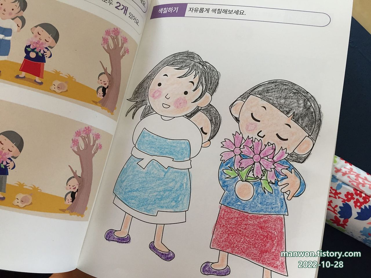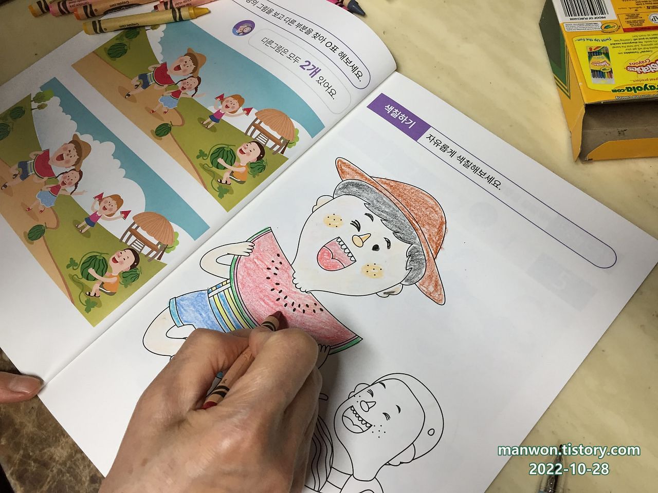 위 사진처럼 색칠공부 책도 갖고 오셨다. 치매 예방에 색칠하기가 좋다고 하더라.