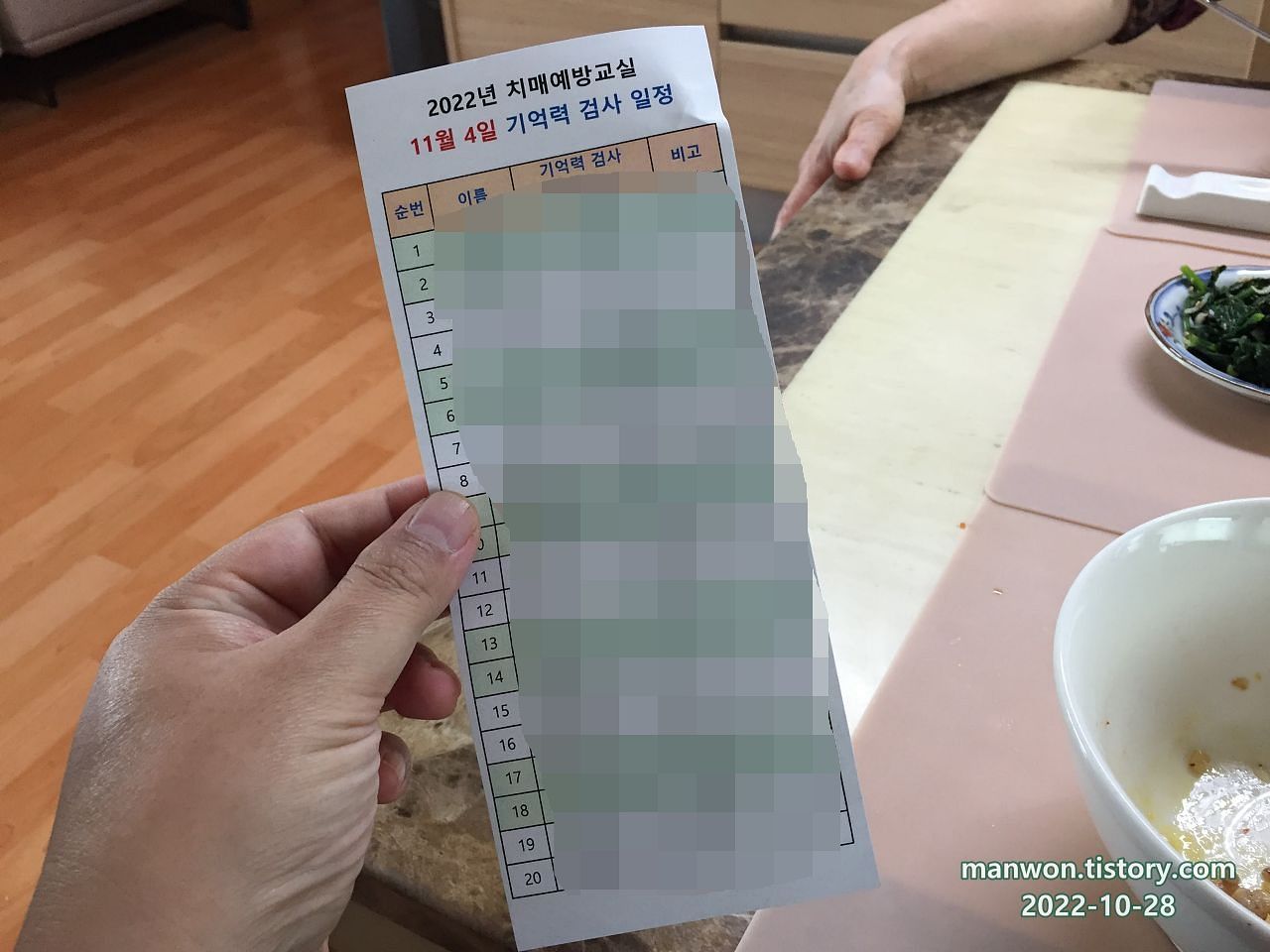 어머니 보건소 치매 예방 교실 기억력 검사 간단 후기