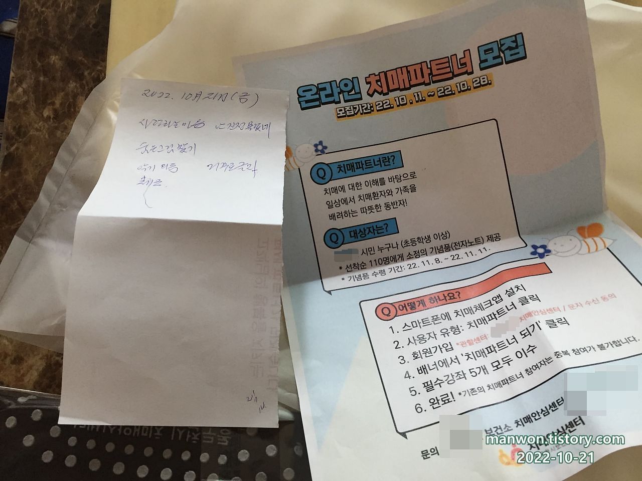 | 어머니 보건소 치매 예방 교육 3일 차 간단 후기 (2) | 2022.09.23 |