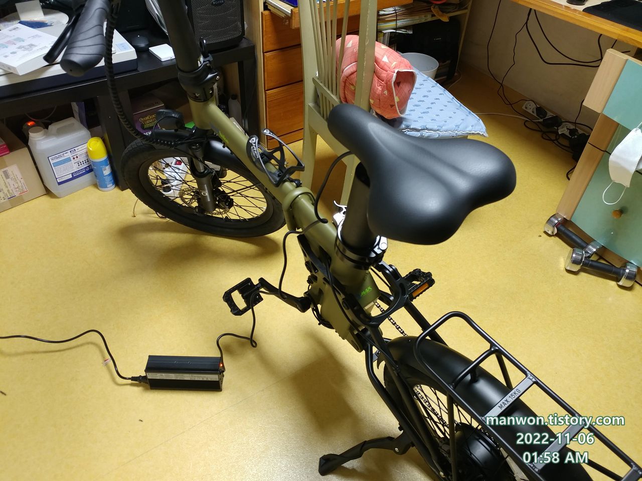 토요일 배달을 모두 마치고 잠자리에 들기 전에 이번에 구매한 퀄리 큐 맥스 롱레인지 전기 자전거의 첫 충전을 시작했다. 물건을 11월 2일에 받았으니까 4일 이상 전기 자전거에 손도 대지 않은 셈이다.