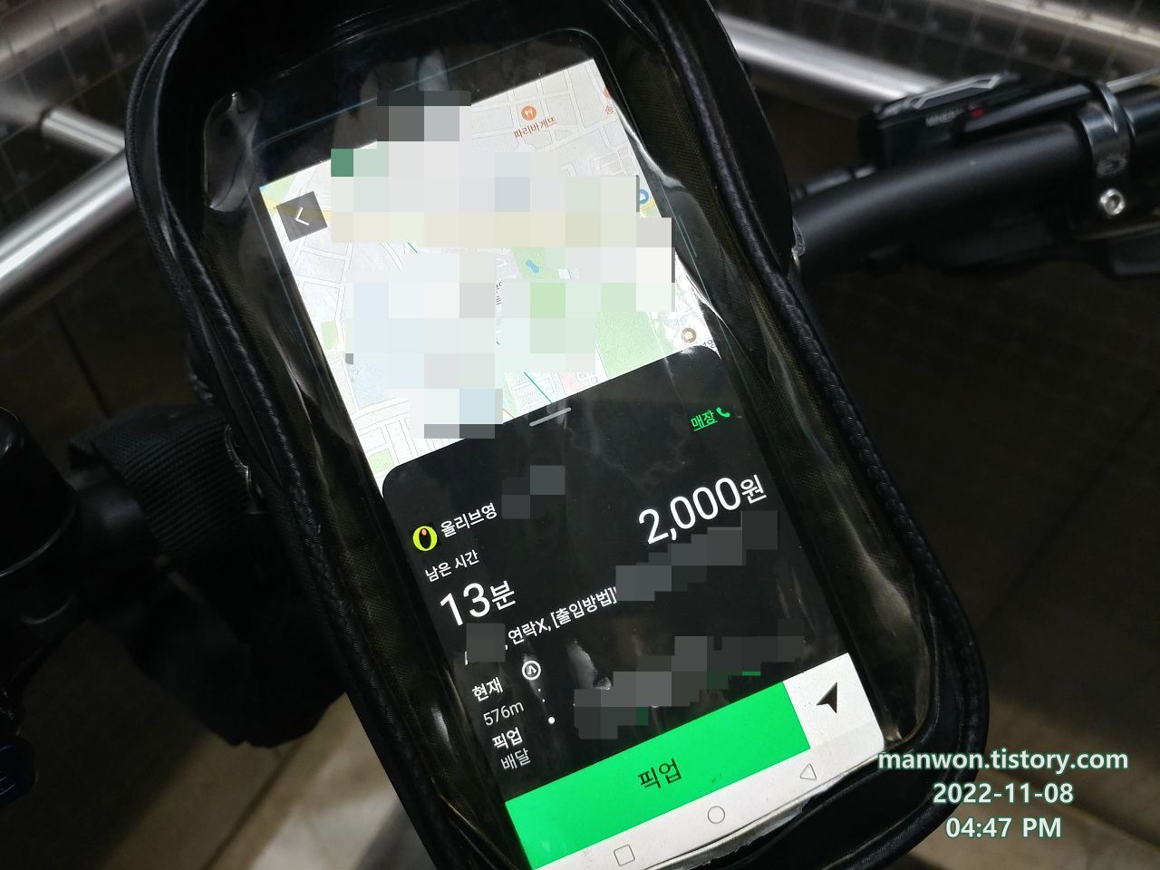 1건에 9천 원지만 이번 배달은 픽업지도 오르막길이고 전달지도 오르막길이었다. 거기다가 이미 조리 완료로 떴으니까 최대한 빨리 이동해야 한다는 심리적인 압박감도 있었다.