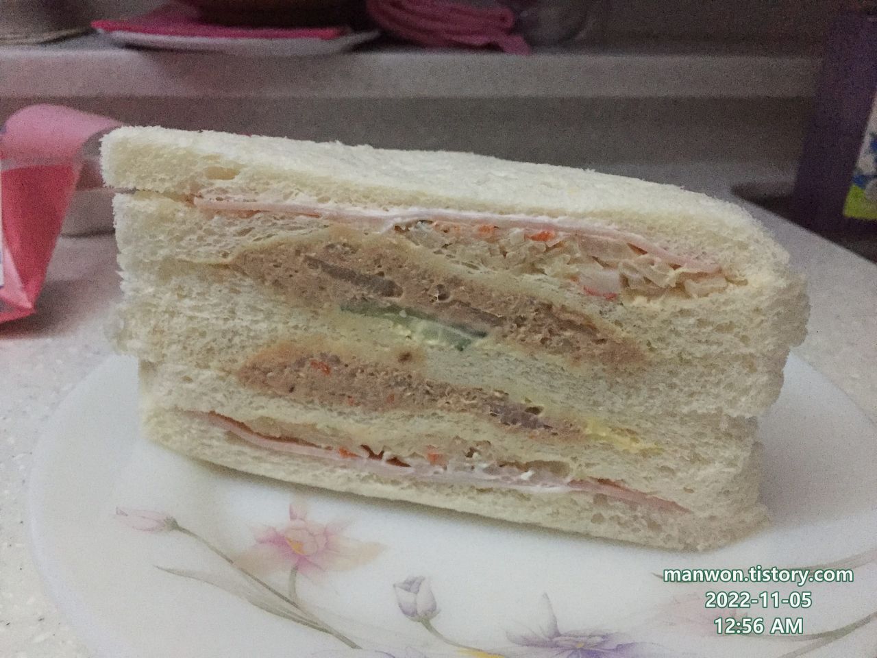 편의점에서 구매한 건데 샌드위치의 내용물이 꽤 실하다.