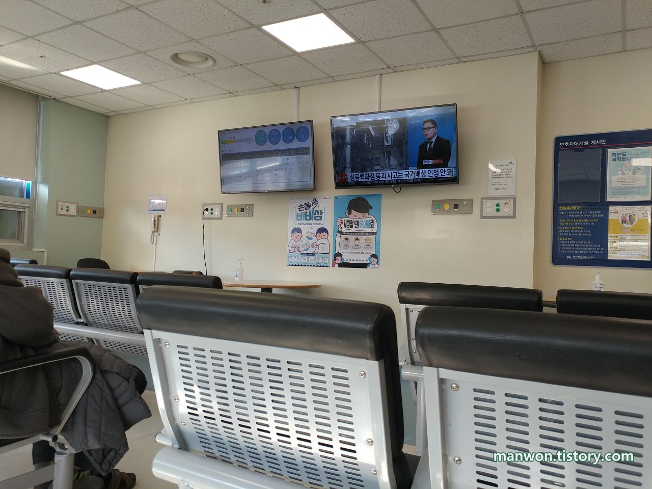 일단 환자가 응급실 문을 통해서 안으로 들어가게 되면 그때부터 보호자와 환자는 철저히 격리된 채로 모든 게 진행되었다. 보호자가 이전처럼 옆에서 동행하고 필요한 걸 챙겨주고 그런 게 전혀 불가능했다. 대신 보호자 대기실에 있는 모니터를 통해서 환자가 지금 무슨 검사를 받고 있는지 입원실로 배정이 되었는지 여부 등의 진행 정보만 간략히 확인할 수 있었다.