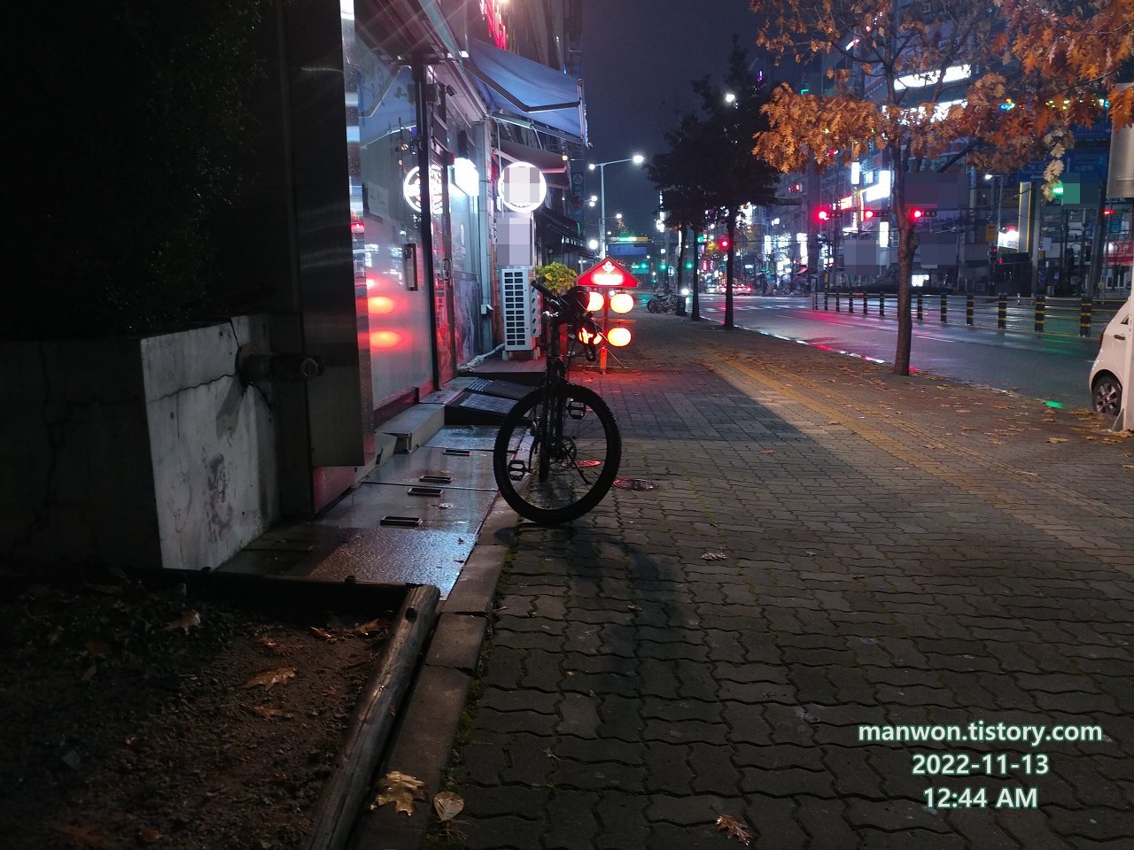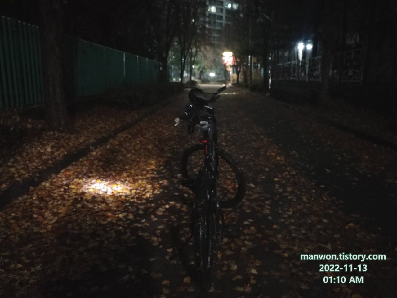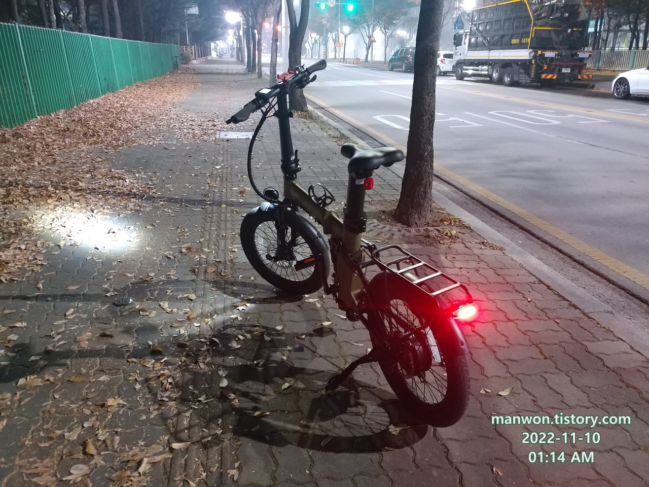 11월 10일 목요일 새벽 1시경. 퀄리 큐맥스 롱레인지를 끌고 동네를 한 바퀴 돌며 시운전했다. 전기 자전거를 처음 타는 거라 아직 많이 어색하다.