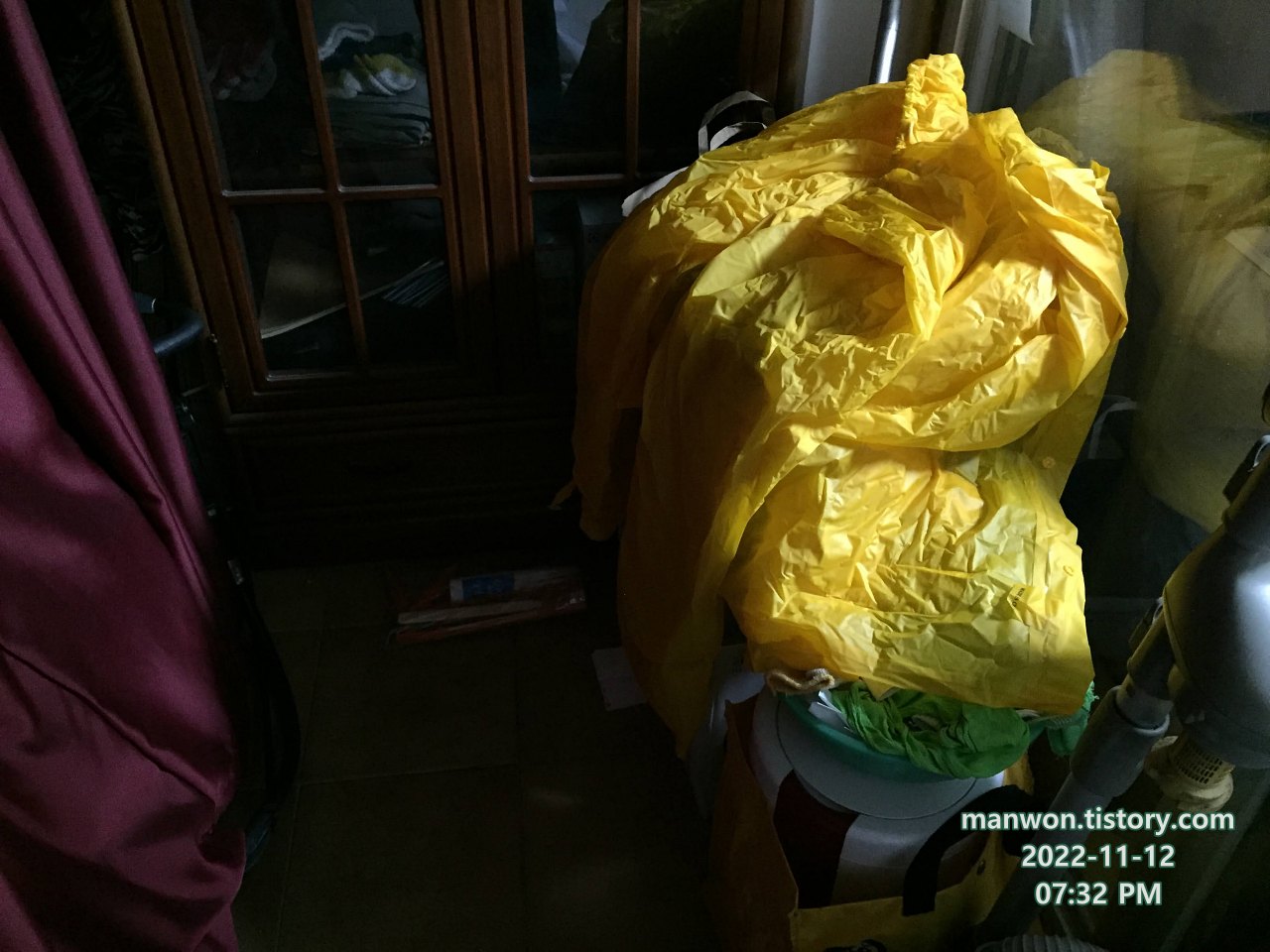11월 12일 토요일 오후 7시 30분경. 우비를 펼쳐놓고 잠시 고민에 빠진다. 지금 비가 오는데 배달을 나갈 것인가 말 것인가...