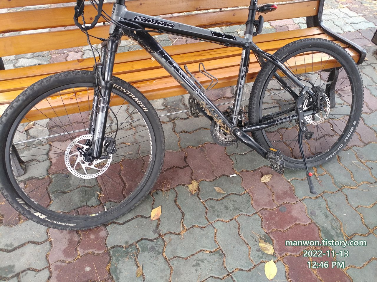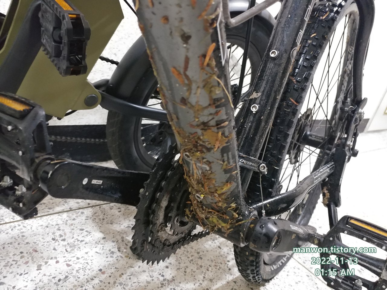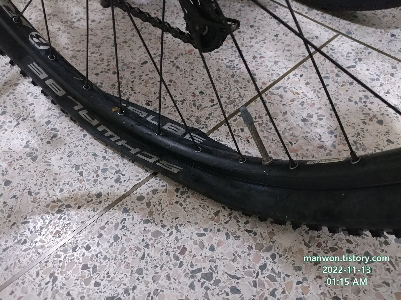 그런데 위 사진을 찍었을 때 뒷 타이어가 갑자기 펑크가 난 시점이었다. 다행히 일 모두 마치고 집 근처에서 펑크가 나서 다행이다 생각을 했는데... 다음날 아침에 확인해보니 앞 타이어도 펑크가 났다. 어떻게 앞 뒤 타이어가 동시에 펑크가 났지? 자전거를 타면서 처음 있는 경우다.