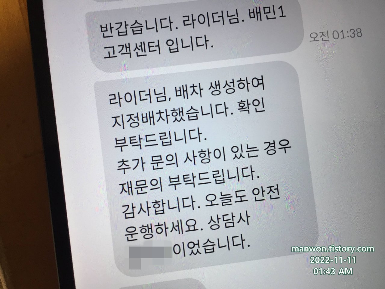 위 사진처럼 추가 배차를 센터 측에서 진행해줬다.