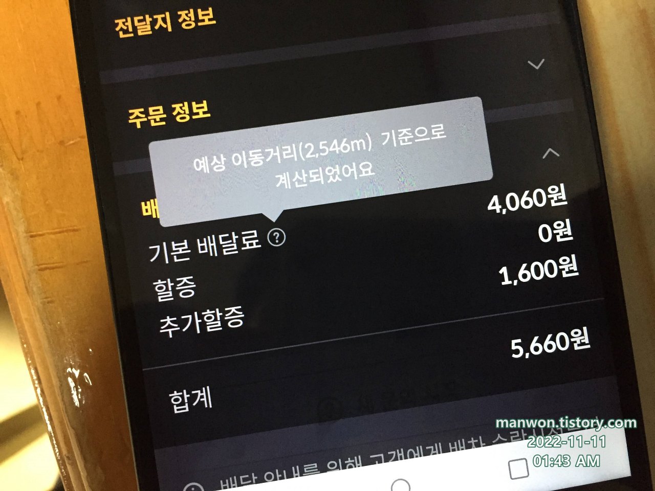 즉 5,660원 + 4060원 = 9,720원 배달료!
