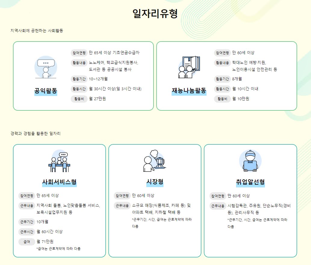 노인 일자리 유형 소분류