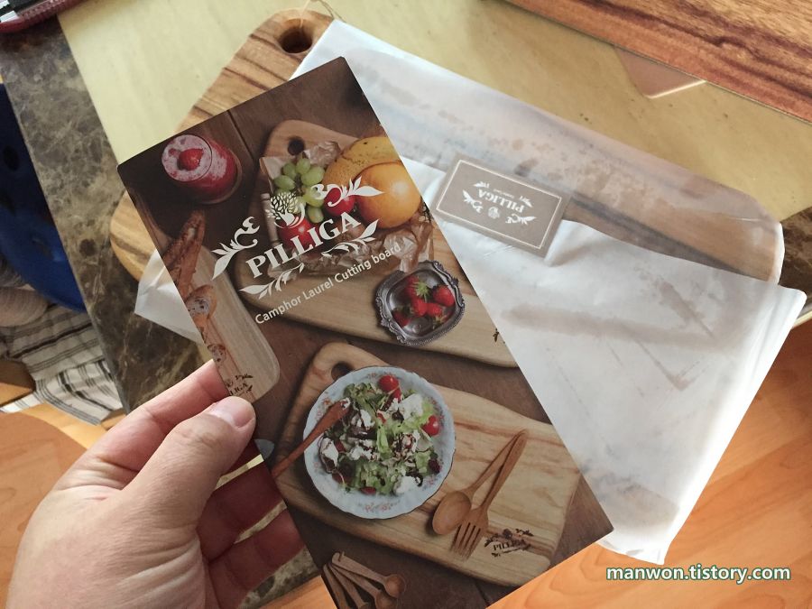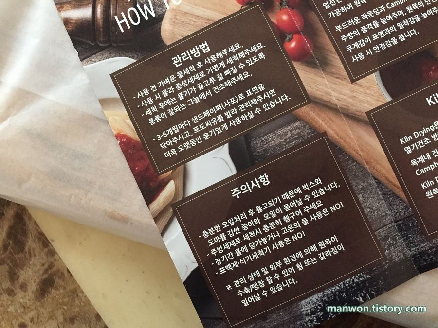 위 사진을 보면 간단한 안내문이 동봉되고 도마를 싼 기름종이가 보인다.