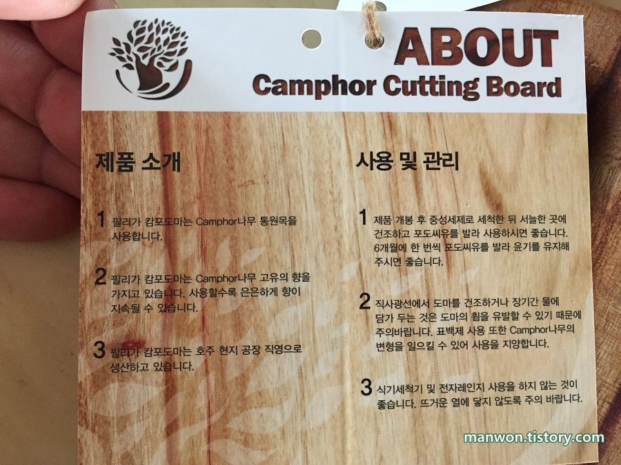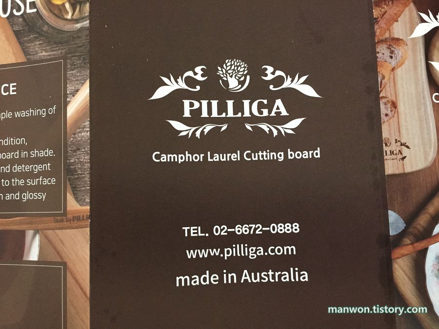 즉 위 사진에 적혀 있는 Pilliga Camphor Laurel Cutting Board는 '호주 필리가 마을의 녹나무로 만든 도마' 정도로 해석하면 될 것 같다.