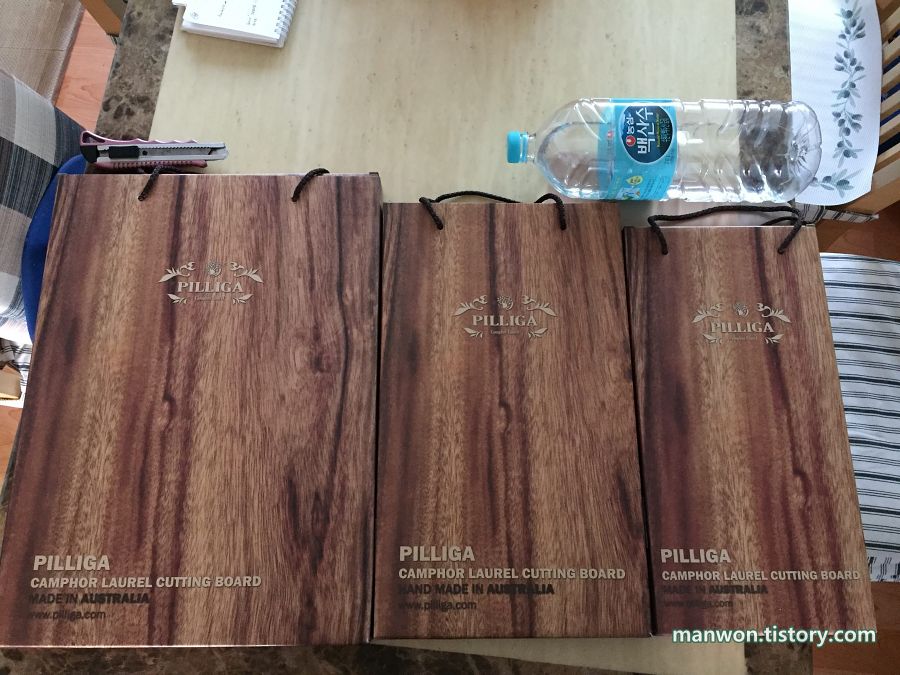며칠 전 문 앞에 묵직한 택배 상자가 있어서 개봉을 했더니 위 사진처럼 도마가 3개 들어있었다. 도마 이름이 영어로 적혀 있는데 우리말로 필리가 캄포 도마라고 불리는 제품이다. 아마도 형수가 어머님과 본인이 쓰려고 인터넷으로 구매한 듯싶다.
