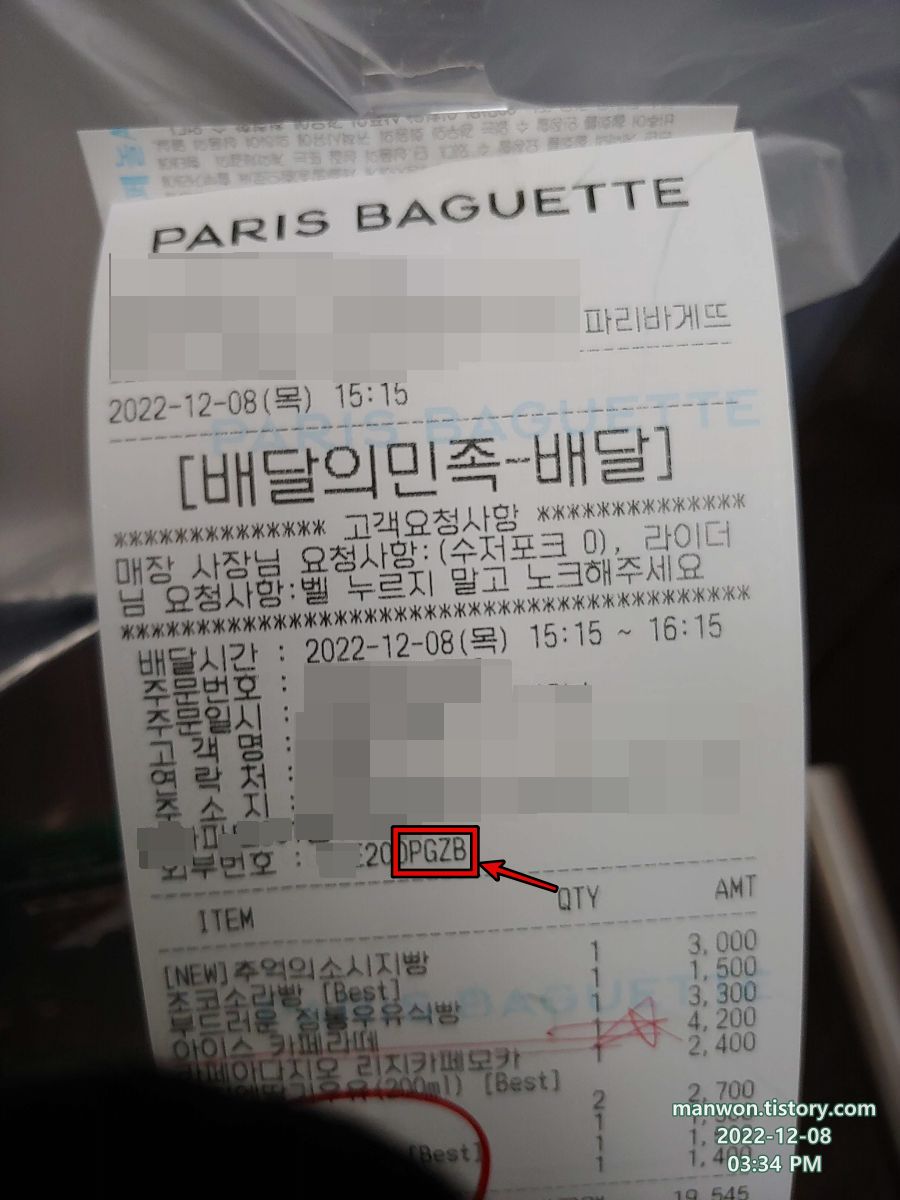 배민원의 경우 픽업하는 음식물 확인을 위해서 4자리 식별 문자를 사용한다. 위 사진의 PGZB처럼 말이다.