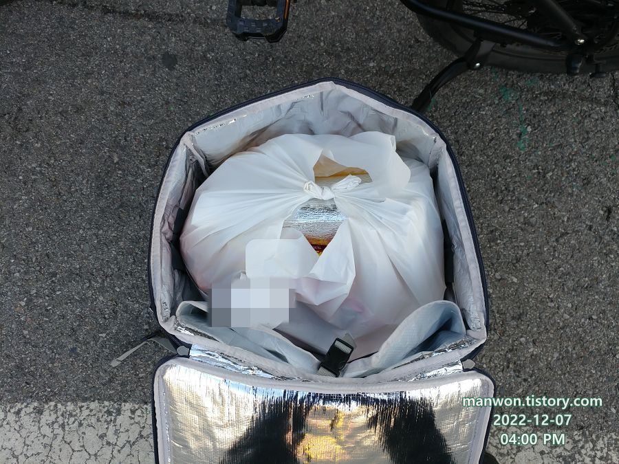 토요일 저녁 시간대라 배달통을 다시 달기는 좀 그래서 그냥 등에 메는 배달 가방만 갖고 서둘러 다시 배달을 나왔다. 뒷짐받이의 배달 가방을 제거하니 승차감이 더욱 좋아졌다.