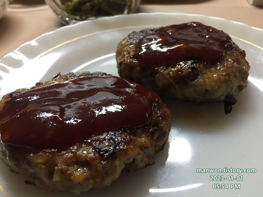 1월 1일 저녁으로 먹은 햄버거스테이크.