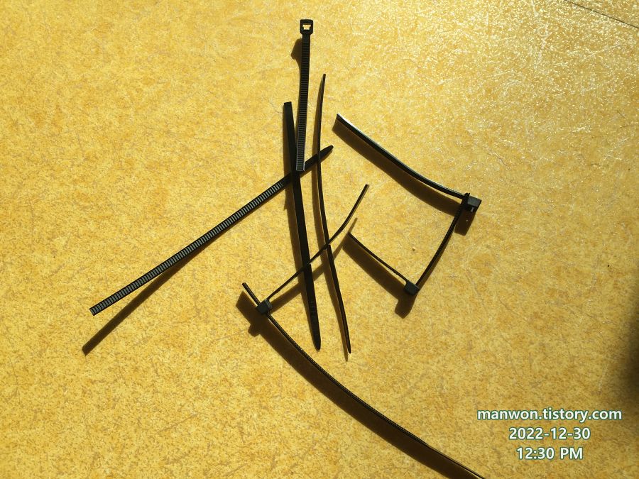케이블 타이를 지금 것보다 두꺼운 걸로, 그리고 국산 제품으로 새로 주문해야겠다.
