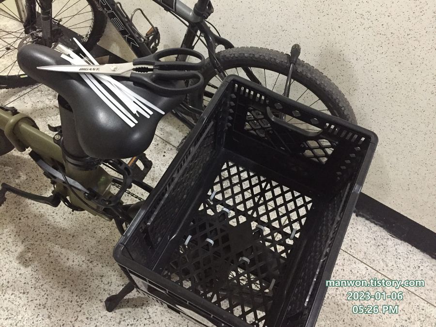 뭐 여하튼, 빅앤트 폴딩박스를 전기 자전거 뒷짐받이에 케이블 타이로 체결하는 작업을 모두 마쳤다.