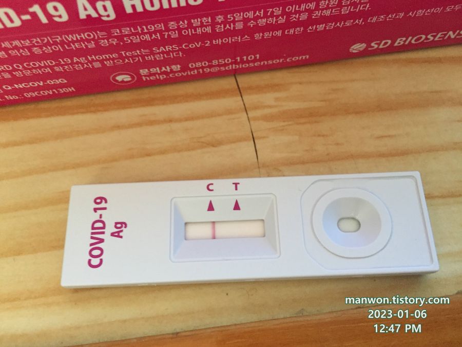 1월 6일 점심때쯤부터 몸 상태가 안 좋았다. 무기력감이 살짝 느껴져 체온을 재보니 36.9도가 나왔다. 살짝 애매하긴 한데 혹시나 해서 코로나 자가검사 키트를 꺼냈다.
