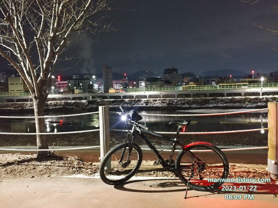 아직 길에 눈이 남아 있어서 일반 자전거를 끌고 나갔다.