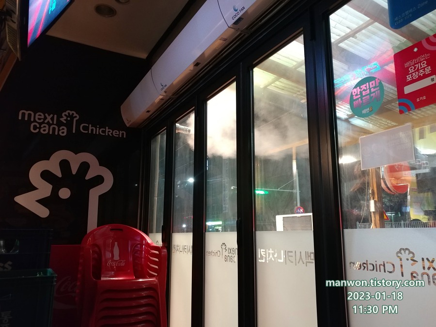 멕시카나 치킨 조리 대기 중 찍은 사진. 이때가 밤 11시 30분.
