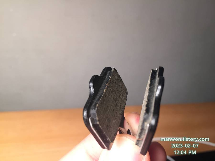 집에 와서 이번에 떼낸 패드를 살펴봤다. 위 사진에서 알 수 있듯이 패드가 거의 남아있지 않은 상태였다.
