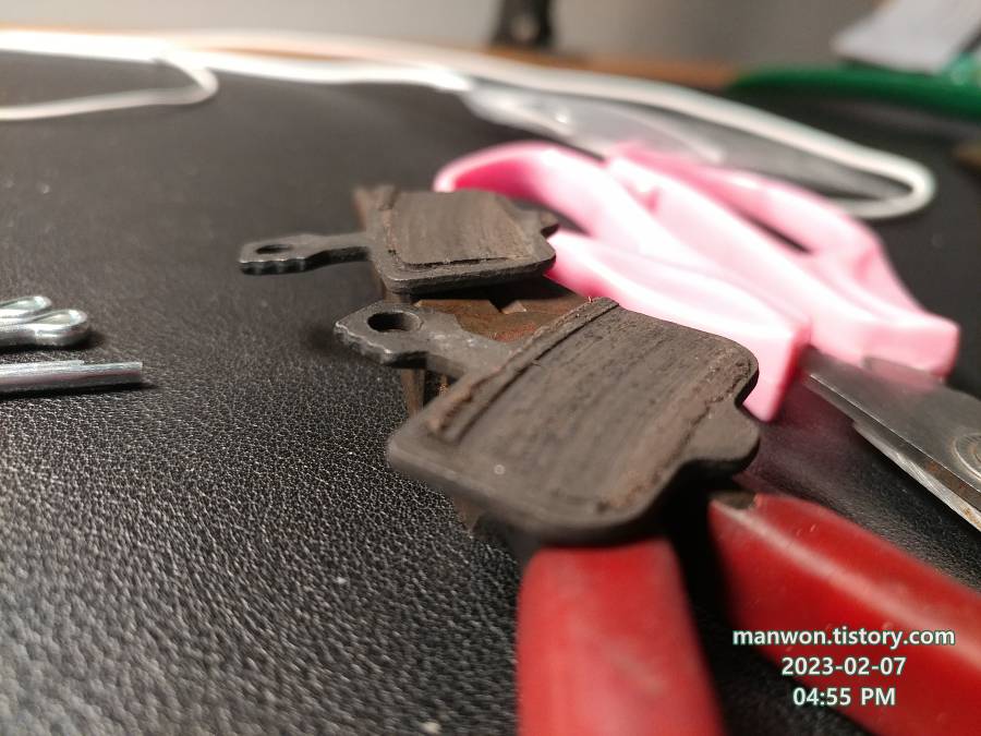 굉장히 의아했던 게 이 자전거를 구매하고 고작 3~4개월 지난, 실주행거리도 1,000km를 살짝 넘긴 시점인데 디스크 브레이크 패드를 교체해야 한다는 것이었다. 자전거 자체 무게가 꽤 나간다는 걸 감안해도 이건 디스크 패드가 너무 빨리 마모되는 게 아닐까 하는 생각이 들 정도다.