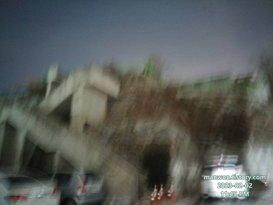 커피랑 주전부리를 파는 음식점 앞에서 조리대기 하던 중 찍은 사진. 주변이 어두워서 노출 시간을 길게 잡았는데 그 사이에 손이 흔들려서 위 사진처럼 엉망으로 나왔다. 그런데 이것도 나름 괜찮게 여겨져서...